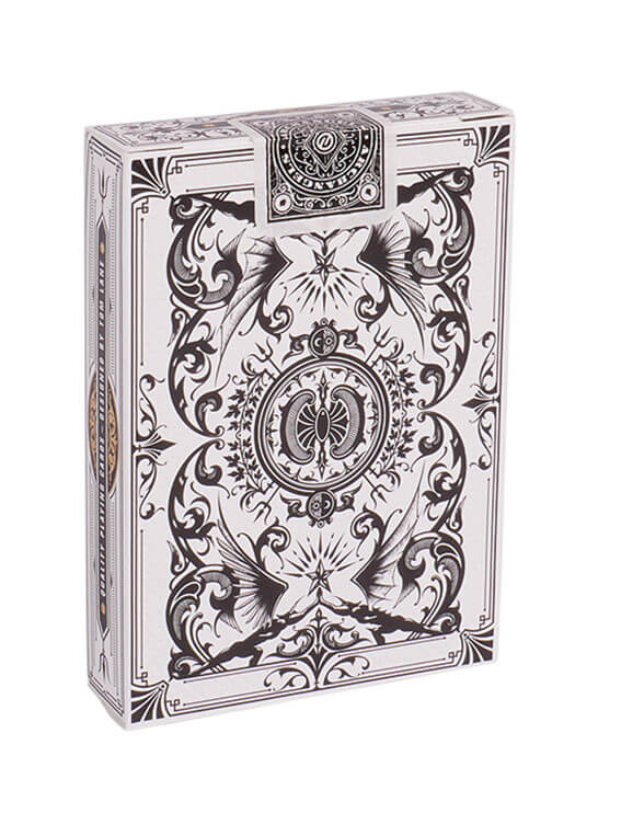Das Highlight der Pokerkarten sind die Rückseiten mit vielen Details versehen. Man findet Engel und Dämonen, Tag und Nacht, Licht und Dunkelheit sowie Gut und Böse. Bei der Verpackung ist die Haptik dank einer Prägung und Goldfolie sehr exklusiv. Zauberer, Magier und Design Fans sind begeistert von diesen Pokerkarten.